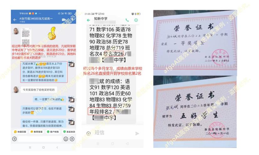 【来自重庆的宣均同学】初二男孩,住校每周回,偏科严重,沉迷游戏。住校每周仅能回来2次的情况下,使用这套系统方法一周后,考试就有所提高。从这套系统方法中找到了学习的成就感,越学越带劲,使用这个套方法学习2个月后,期末考试排名提高了60多名,家长非常认可,把这套系统方法介绍亲戚朋友。