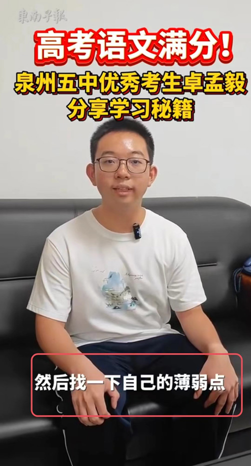 我们再来看看高考语文满分的卓孟毅同学他的学习方法秘籍,根据东南早报的采访,卓同学说,针对语文基础知识模块,高一高二阶段,老师在日常的课堂教学中会逐步渗透相关的知识点,这个时候要注重积累。到高三一轮复习的时候,老师会把那些重要的基础知识点重新过一遍,分专题整理出来,这个时候可以重新巩固,增进自己对这些知识点的认知,找一下自己的薄弱点。
